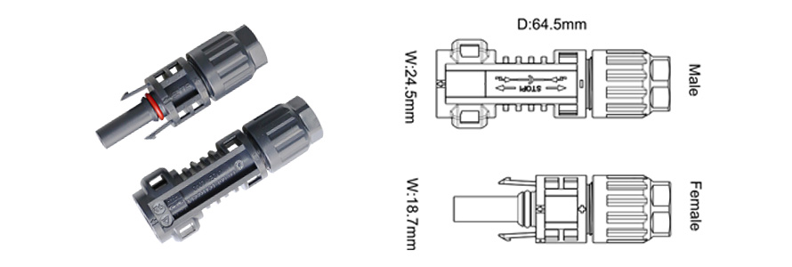 PV4-S ソーラー コネクタは、ソーラー アレイの信頼性が高く安全な接続を保証するためにテストされています。コネクタは、業界標準の圧着工具を使用しており、これは容易に入手でき、今日の設置業者が使用しています。