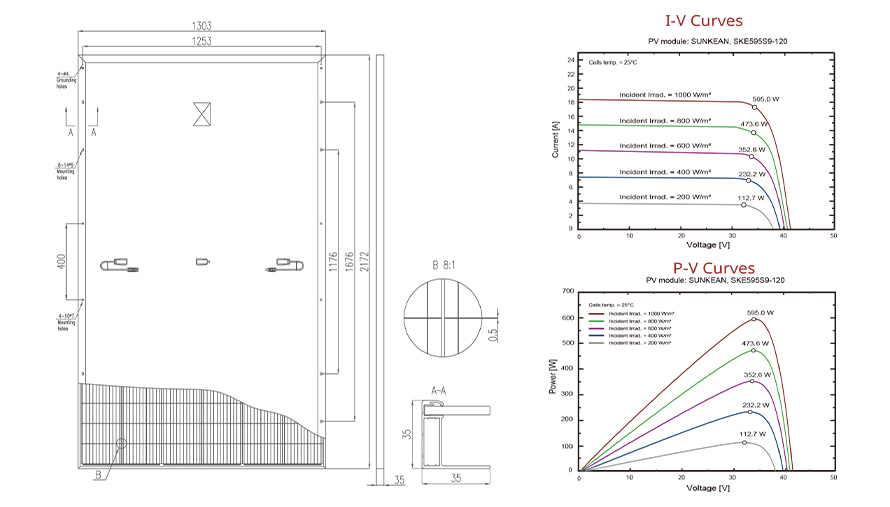 210mm 605Wモジュールの変換効率は、21 . 4%,高い出力電力,低い温度係数,に達することができ、システムのBOSコストを効果的に削減し、プロジェクトの歩留まりを向上させます.
