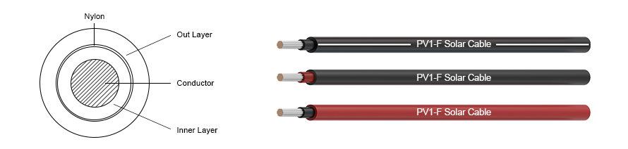 PV1-Fソーラーケーブルは、照射架橋ポリオレフィン、ナイロン、およびシロアリやげっ歯類に耐性のある照射架橋ポリオレフィンの3層絶縁構造で作られています。日光の下で屋外で使用することも、地面に直接埋めることもできます。