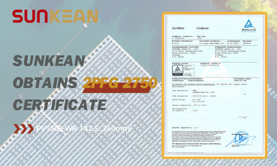 2023 年 5 月 24 日、第 16 回国際太陽光発電およびスマート エネルギー会議および展示会 (SNEC) で、テュフ ラインランドは浮体式太陽光発電ケーブル 2 PfG 2750 標準認証を SUNKEAN に発行しました。SUNKEAN は、水上ソーラー ケーブルの研究開発と製造において業界の最前線に立っています。同社は常に、太陽光発電産業の発展と太陽光発電用途の多様化を支援し、業界の標準化プロセスを積極的に推進することに尽力してきました。