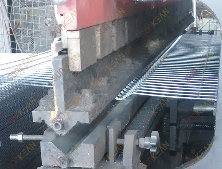 まず、柵の原料となるロール状の鋼線から本体のネットとなる線を切り取ります.
