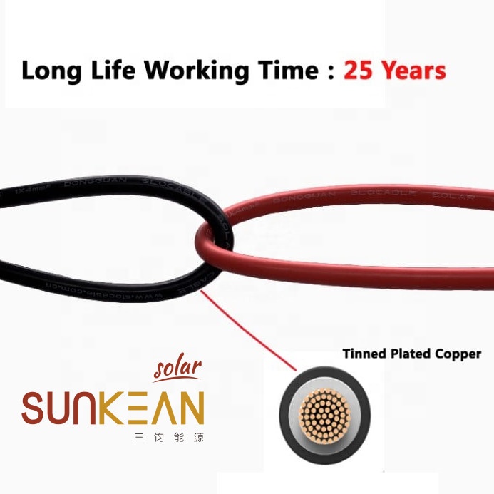 太陽光発電ケーブルは常に太陽光にさらされており、太陽光発電システムは高温や紫外線などの過酷な環境条件下で機能することがよくあります。晴れた日には、太陽系のサイト温度は 90 ~ 100℃ に達することがあります。SUNKEAN ソーラー ケーブルは、ソーラー システムに特化した TUV/CE/UL の認証を受けています。太陽光発電ケーブルの代わりに通常のPVCケーブルを選択すると、明らかにソーラーシステムの耐用年数に大きな影響を与えます。