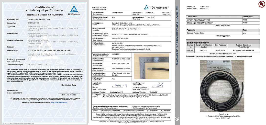 当社は中国の PV ケーブルのメーカーおよびサプライヤーの 1 つです。当社の SUNKEAN® H122Z2-K ケーブルは、太陽光発電所と屋上の PV 設置の両方に有効な CPR Dca 認定を満たしているため、PV ケーブルの在庫ニーズを簡素化できます。