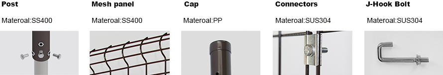 | メッシュパネル | 幅 | 表面処理 | 線径 | 網目サイズ | 曲げ | コネクタ |