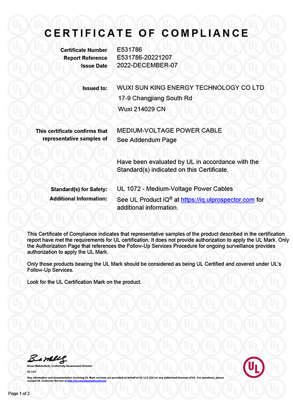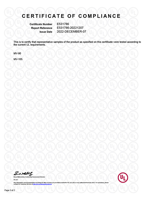 MV-90/105 Cbale UL1072 証明書