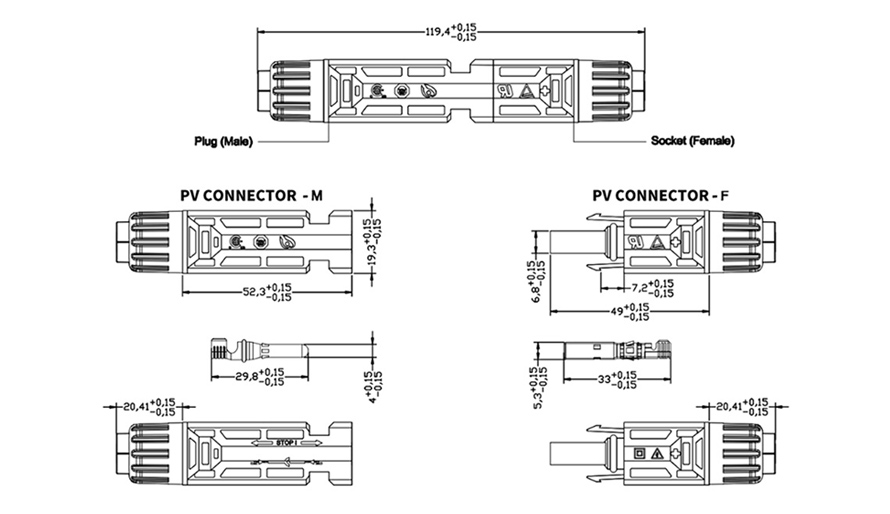 PV コネクタはソーラーケーブルに適しています 2.5mm 2 、 4mm 2および 6mm 2ソーラー接続で プロジェクト、迅速に 太陽光発電システム(ソーラー パネル、 コンバーター)へのソーラーケーブルの信頼性の高い接続