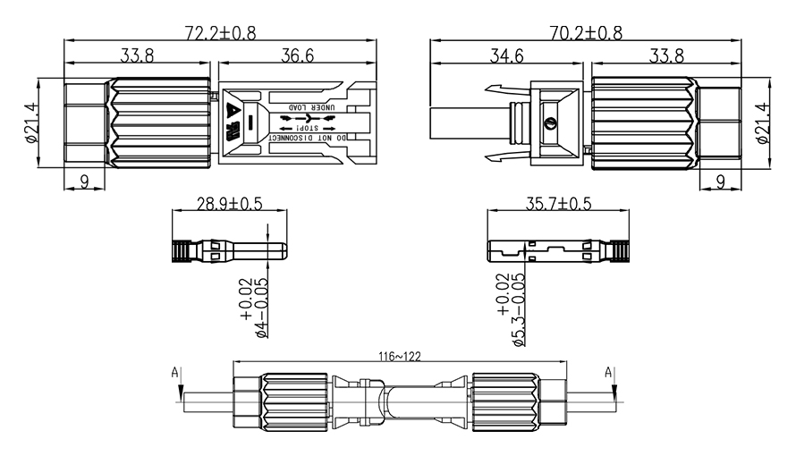 アプリケーション: | ソーラーケーブル 4mm² / 12 AWG、 6mm² / 10AWG |